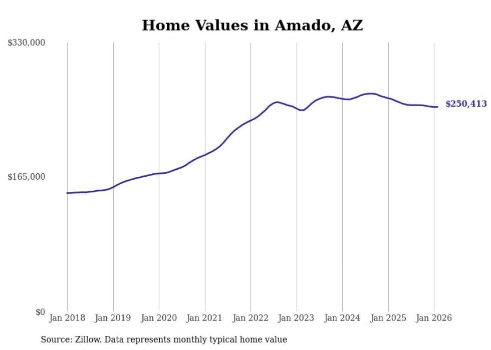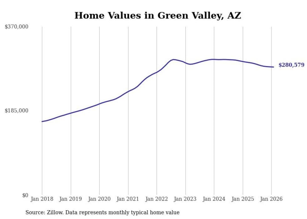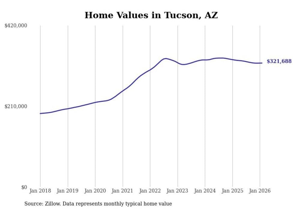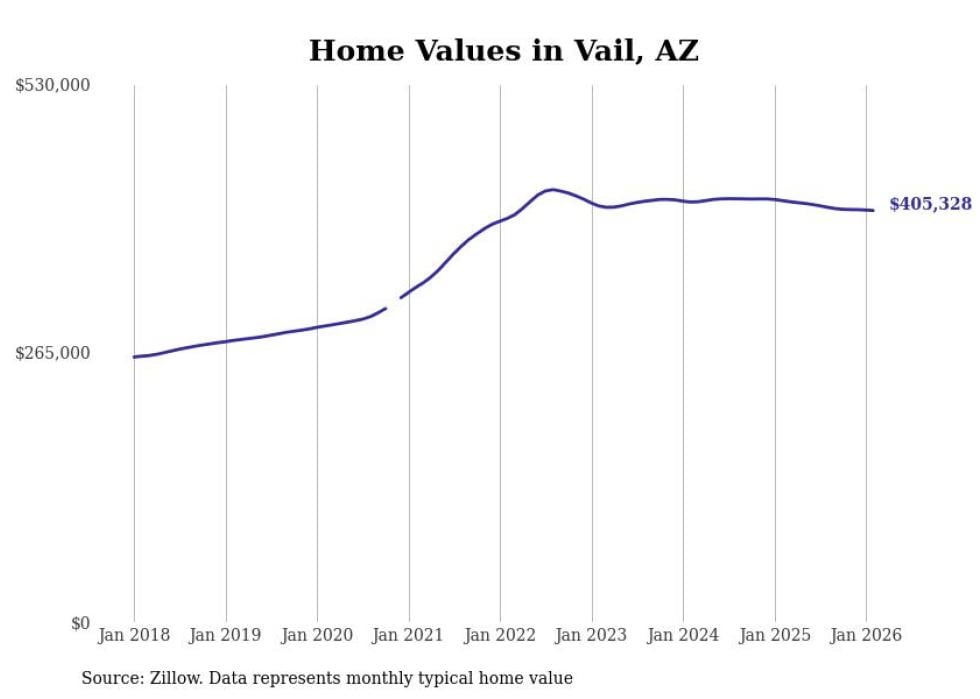 compiled a list of cities with the most expensive homes in the Tucson, AZ metro area using data from . Charts show the monthly typical home value since January 2018.