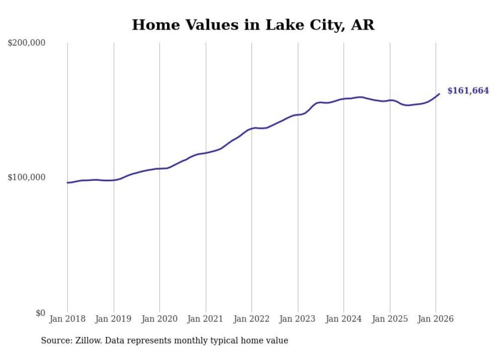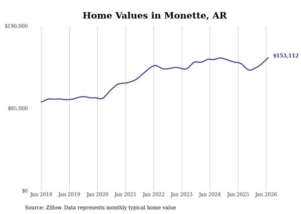compiled a list of cities with the most expensive homes in the Jonesboro, AR metro area using data from . Charts show the monthly typical home value since January 2018.