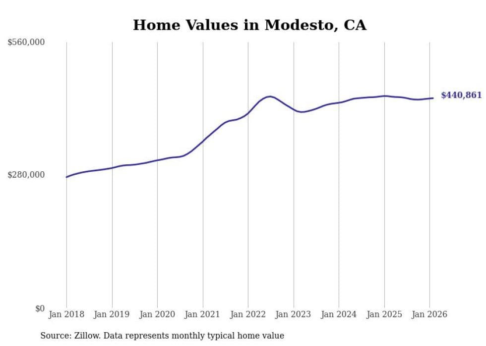 compiled a list of cities with the most expensive homes in the Modesto, CA metro area using data from . Charts show the monthly typical home value since January 2018.