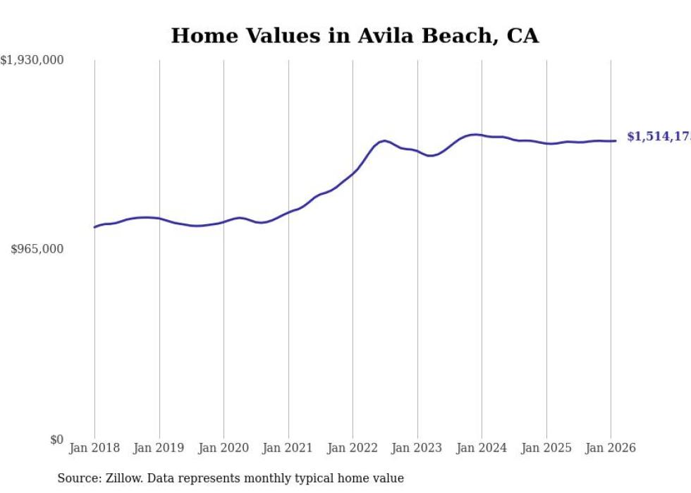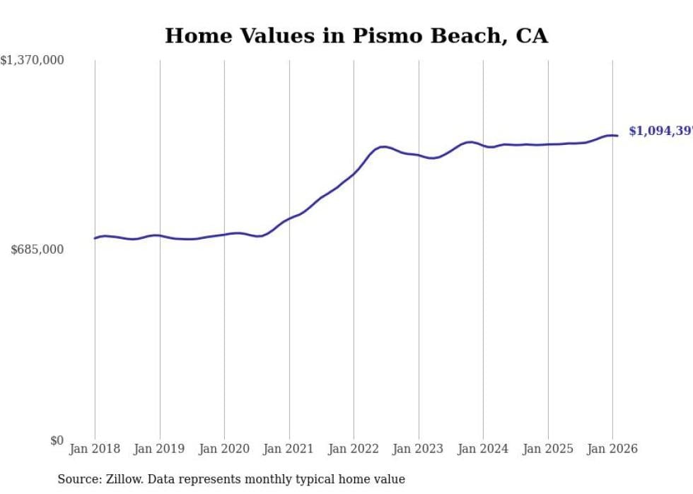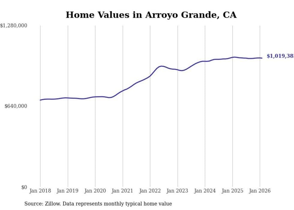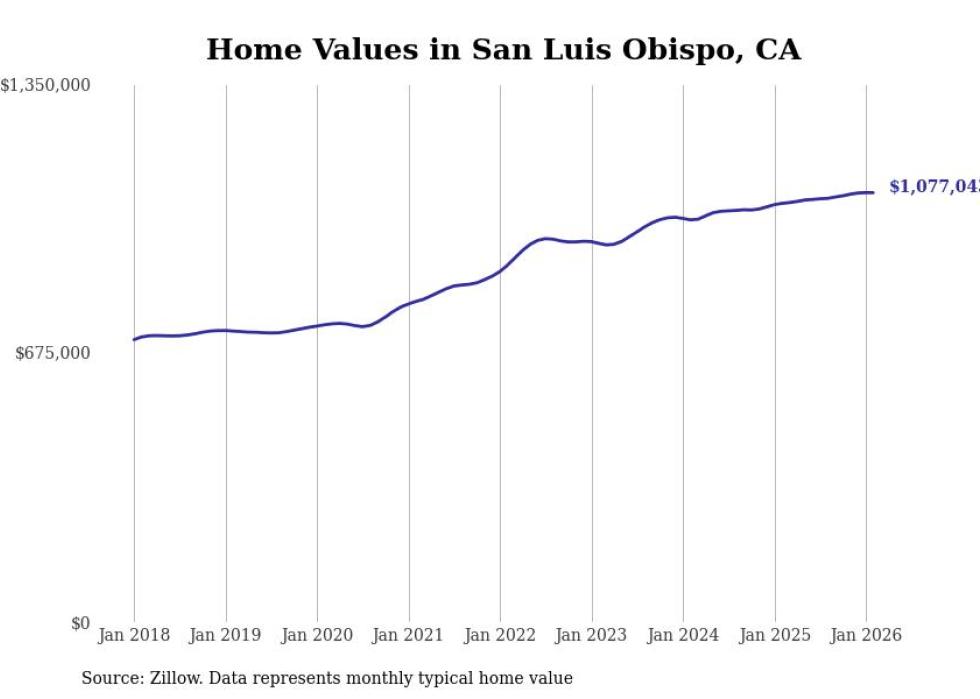 compiled a list of cities with the most expensive homes in the San Luis Obispo metro area using data from . Charts show the monthly typical home value since January 2018. All 17 cities and towns with data available were included in the list.
