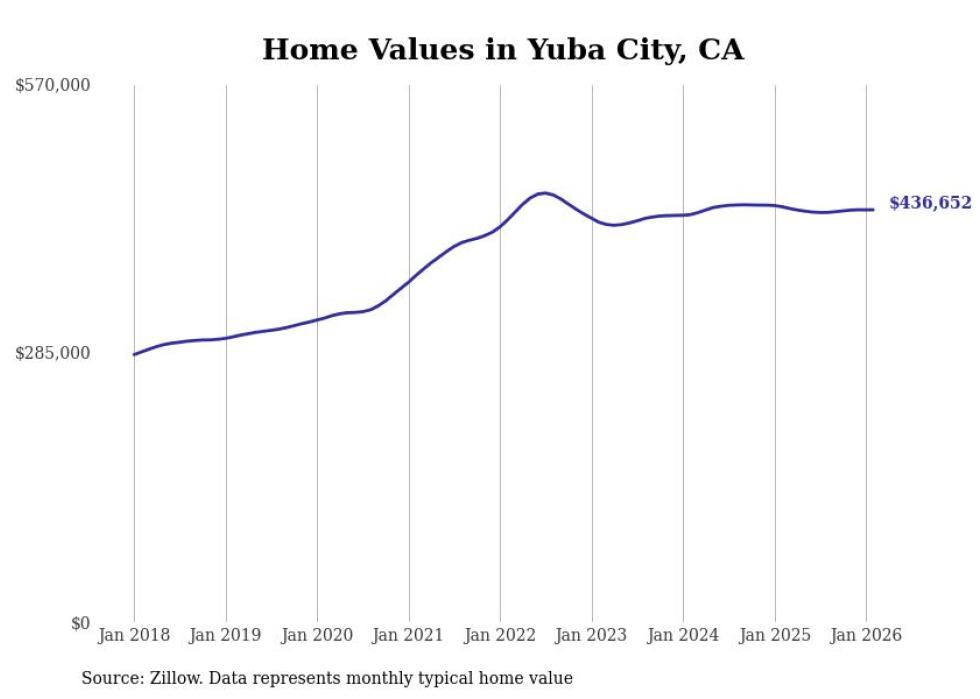 compiled a list of cities with the most expensive homes in the Yuba City metro area using data from . Charts show the monthly typical home value since January 2018. All 21 cities and towns with data available were included in the list.