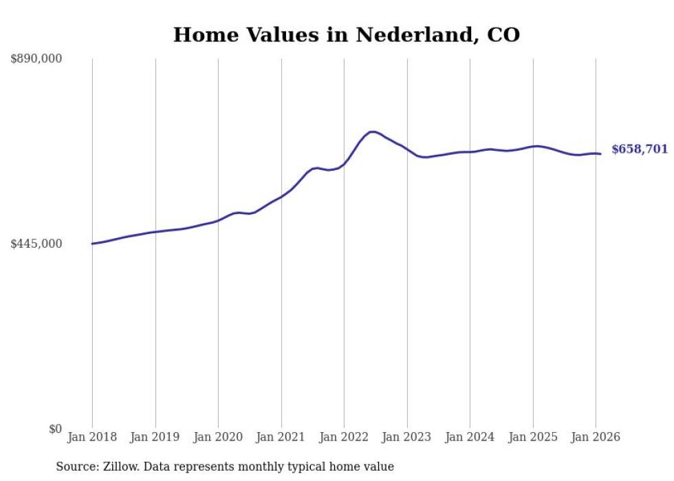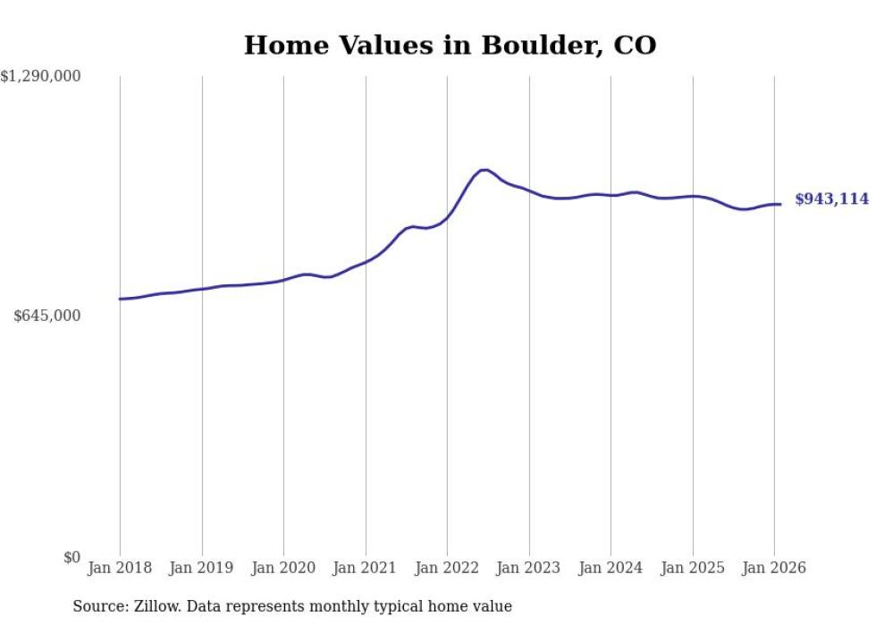 compiled a list of cities with the most expensive homes in the Boulder, CO metro area using data from . Charts show the monthly typical home value since January 2018.