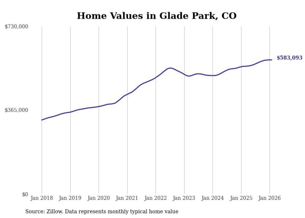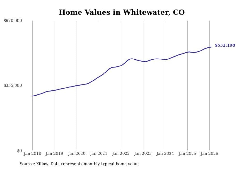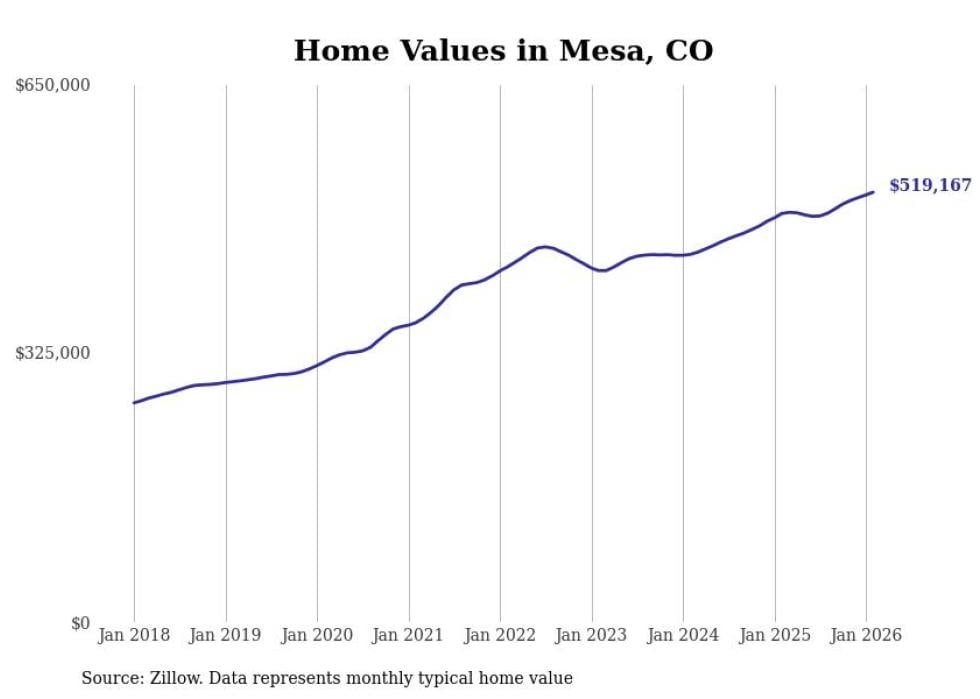 compiled a list of cities with the most expensive homes in the Grand Junction metro area using data from . Charts show the monthly typical home value since January 2018. All 11 cities and towns with data available were included in the list.