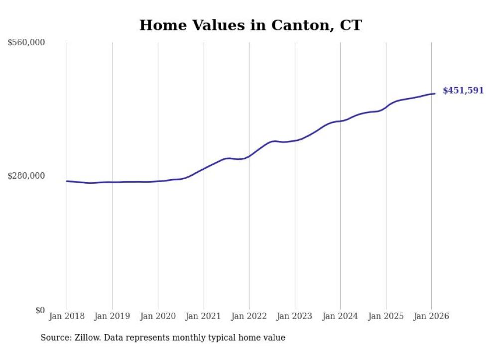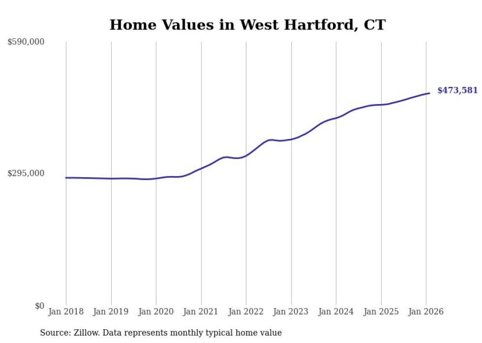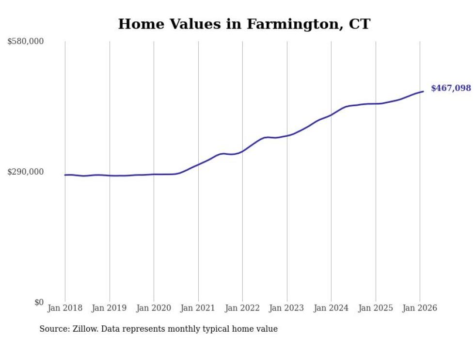 compiled a list of cities with the most expensive homes in the Hartford metro area using data from . Charts show the monthly typical home value since January 2018. Data was available for 59 cities and towns.