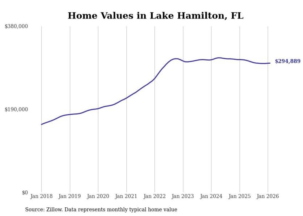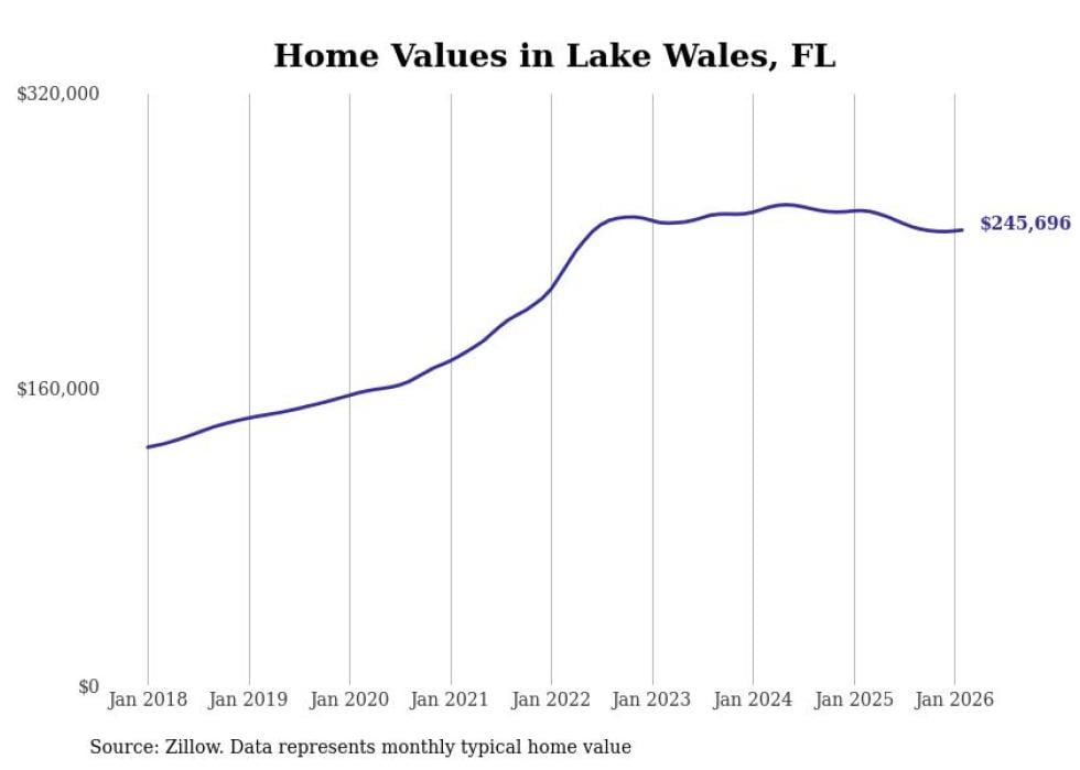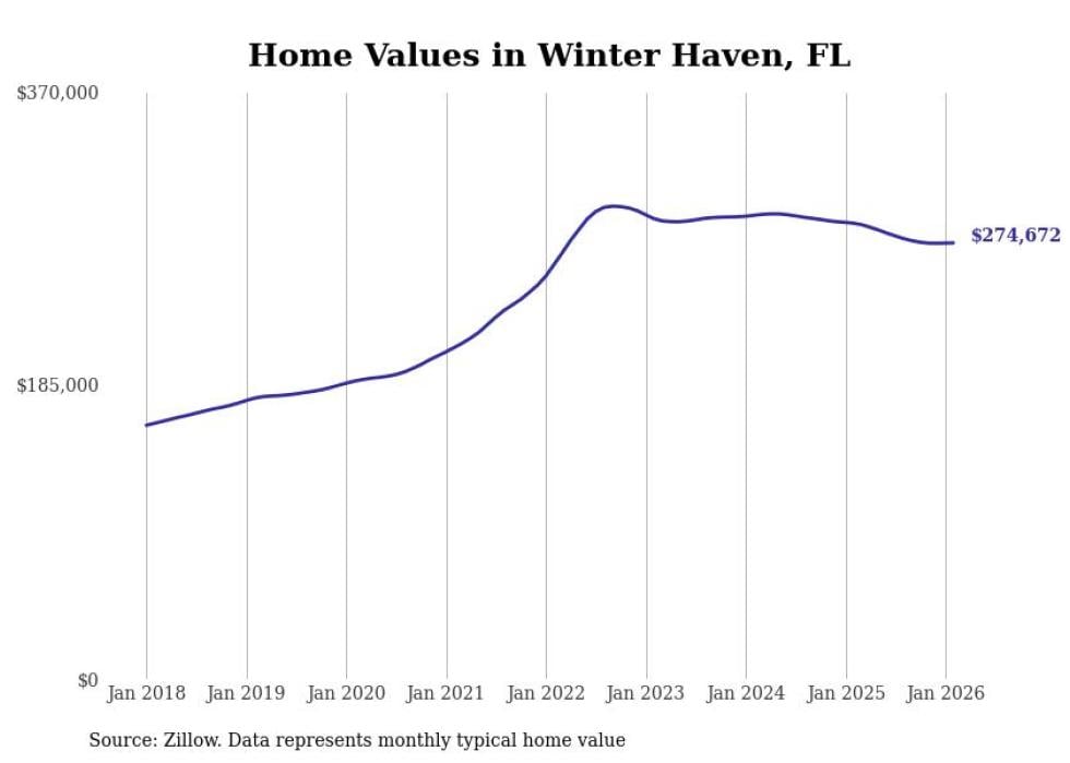compiled a list of cities with the most expensive homes in the Lakeland metro area using data from . Charts show the monthly typical home value since January 2018. All 20 cities and towns with data available were included in the list.