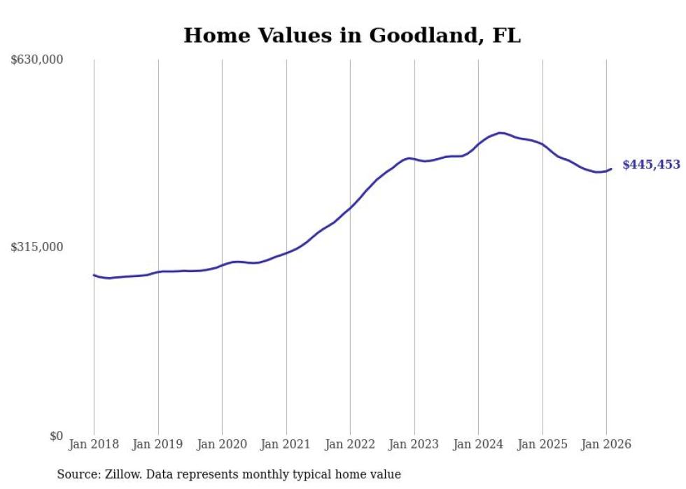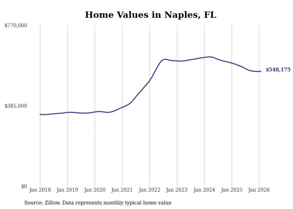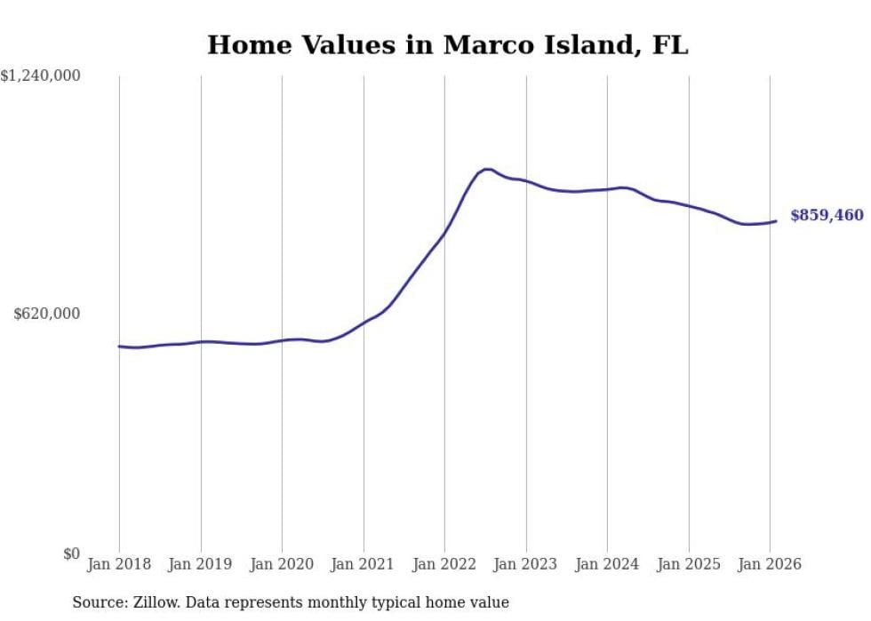 compiled a list of cities with the most expensive homes in the Naples-Marco Island, FL metro area using data from . Charts show the monthly typical home value since January 2018.