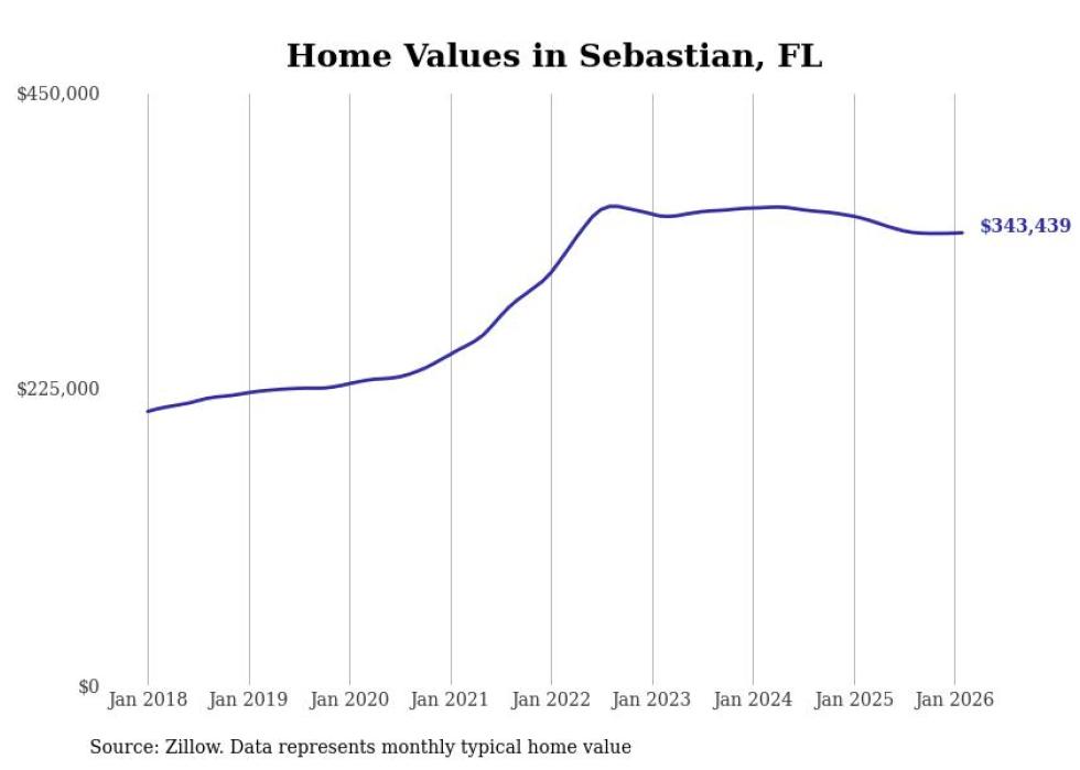 compiled a list of cities with the most expensive homes in the Sebastian metro area using data from . Charts show the monthly typical home value since January 2018. All 4 cities and towns with data available were included in the list.