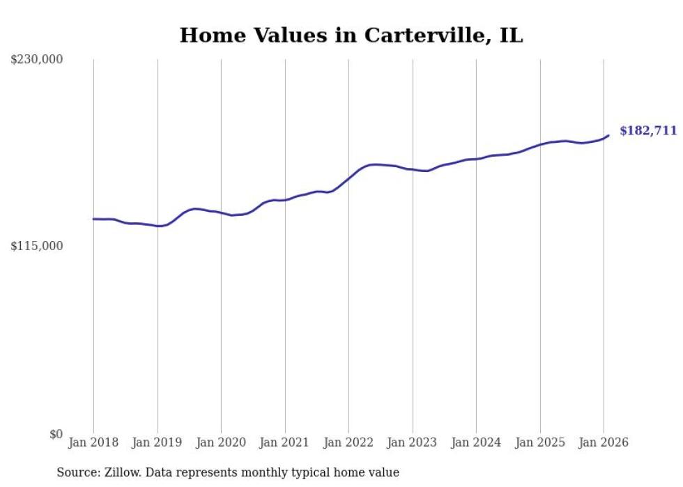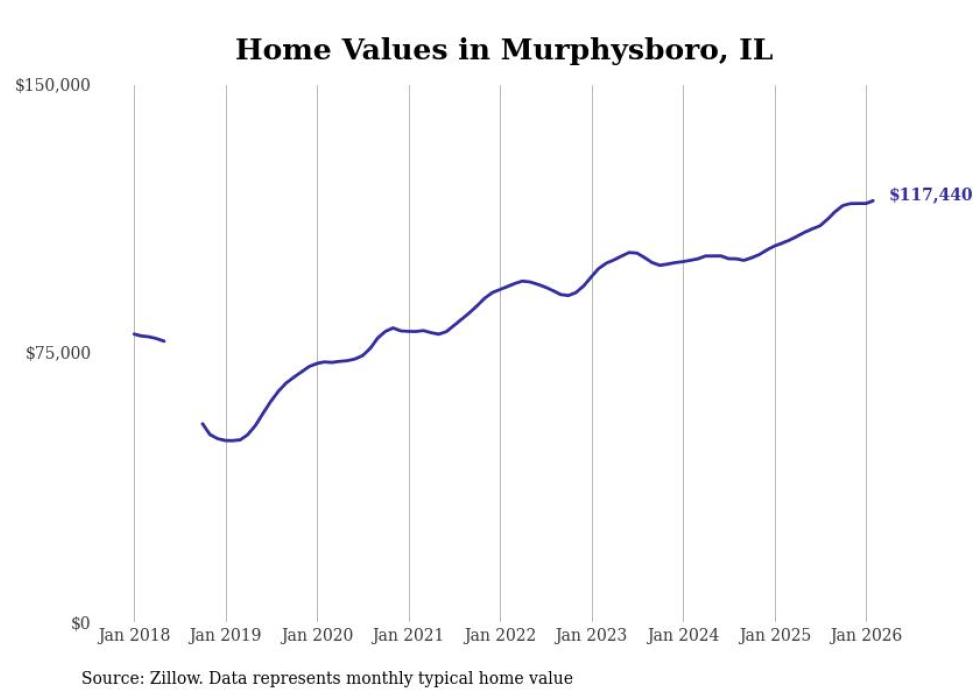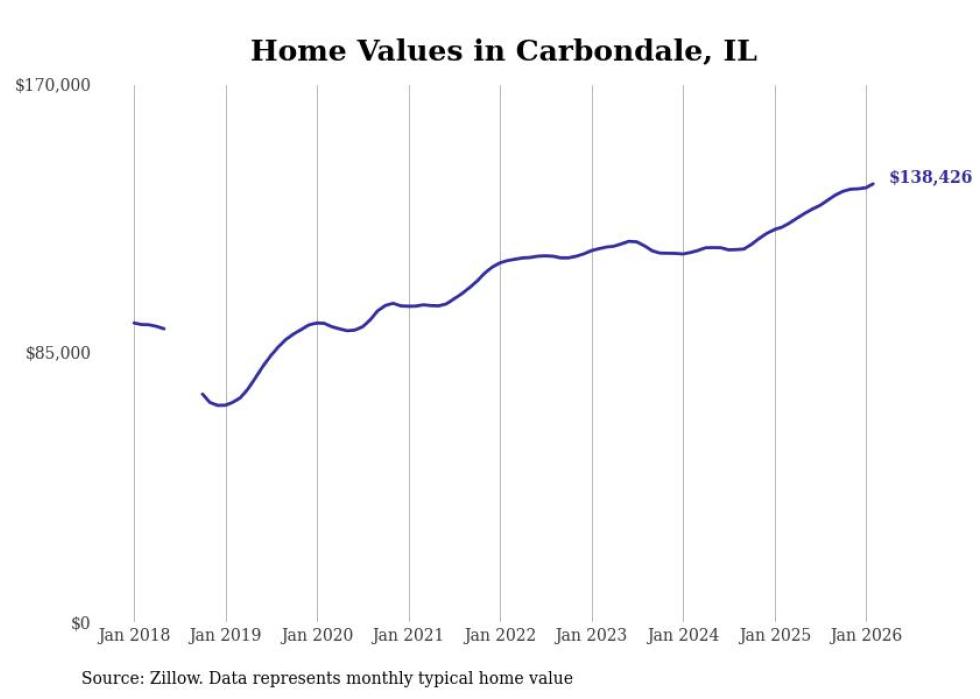 compiled a list of cities with the most expensive homes in the Carbondale metro area using data from . Charts show the monthly typical home value since January 2018. All 28 cities and towns with data available were included in the list.