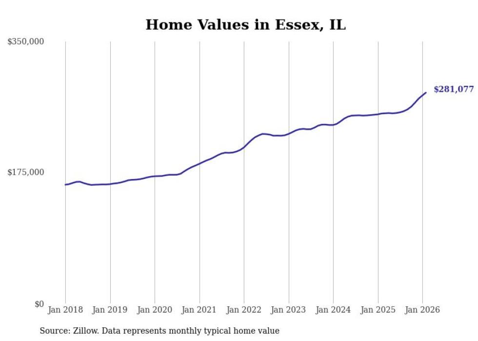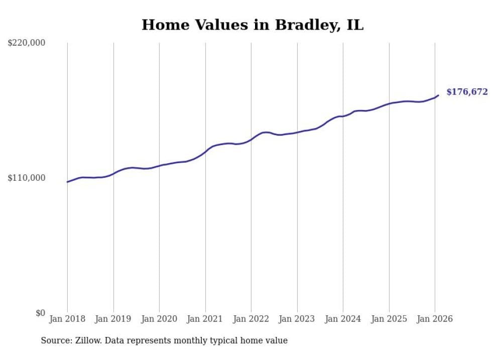 compiled a list of cities with the most expensive homes in the Kankakee, IL metro area using data from . Charts show the monthly typical home value since January 2018.