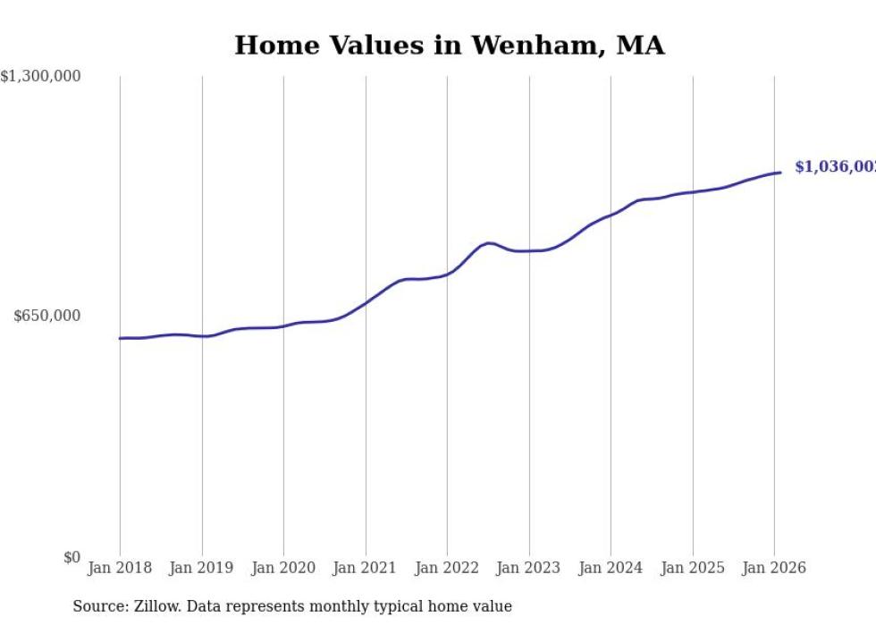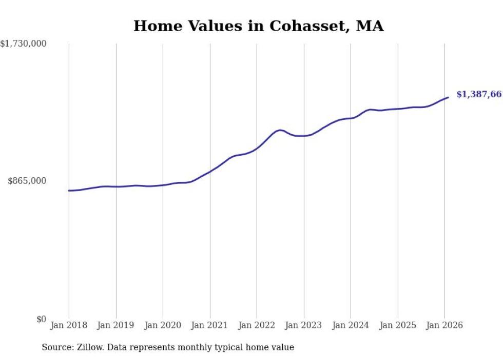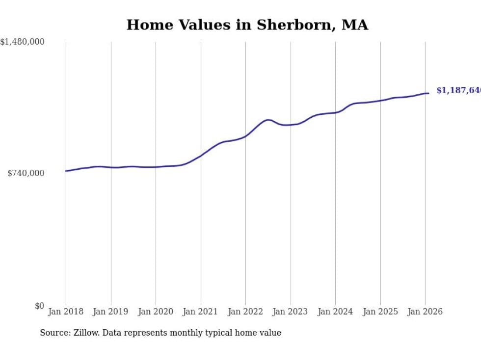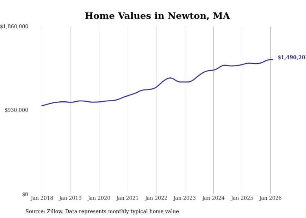 compiled a list of cities with the most expensive homes in the Boston-Cambridge-Newton, MA-NH metro area using data from . Charts show the monthly typical home value since January 2018.