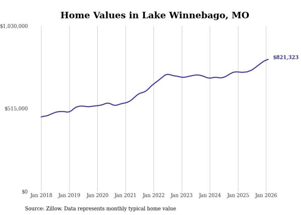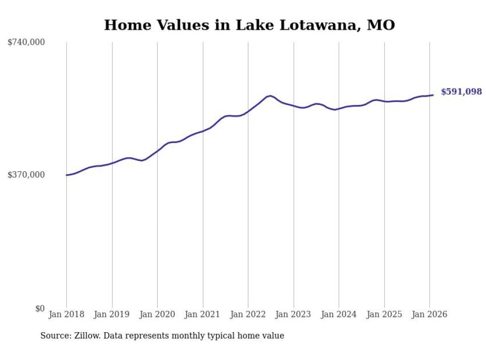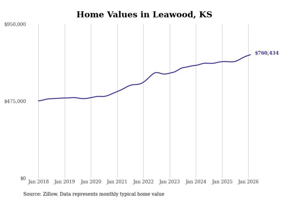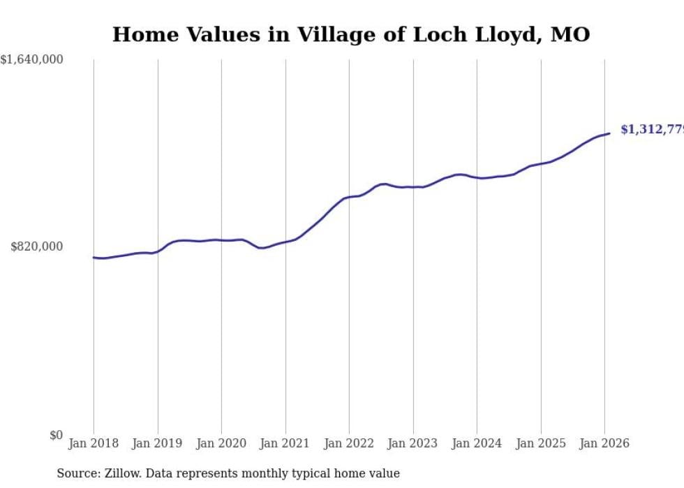 compiled a list of cities with the most expensive homes in the Kansas City, MO-KS metro area using data from . Charts show the monthly typical home value since January 2018.