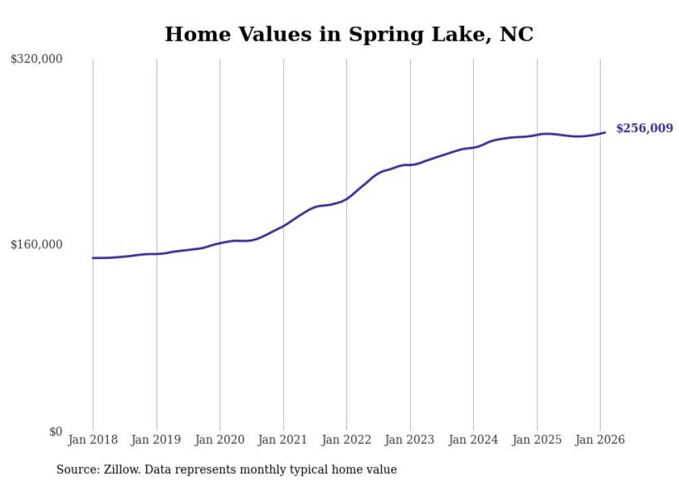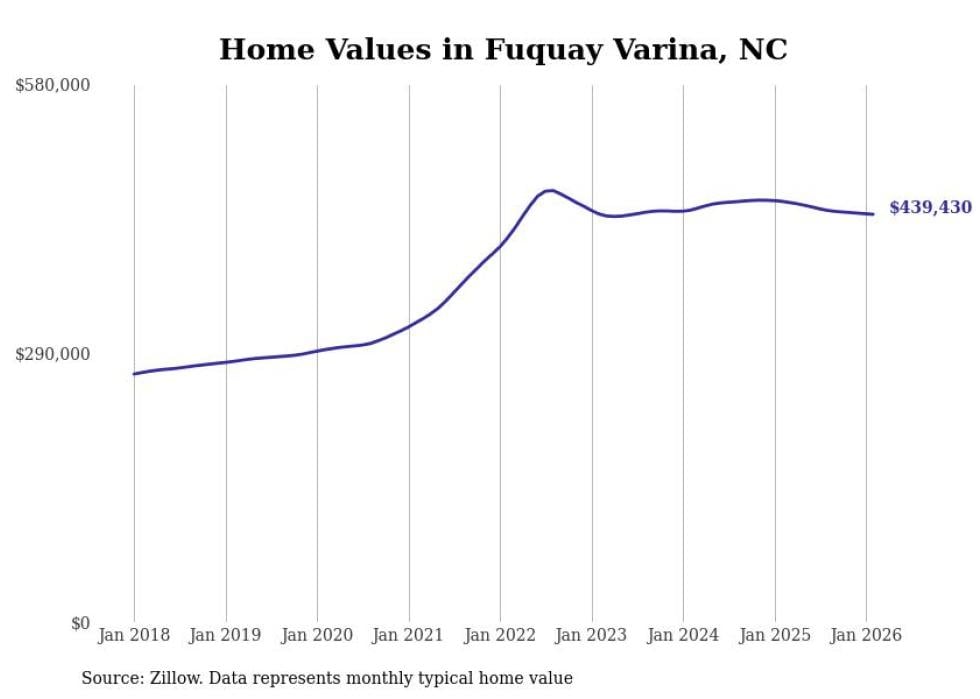compiled a list of cities with the most expensive homes in the Fayetteville, North Carolina metro area using data from . Charts show the monthly typical home value since January 2018. All 20 cities and towns with data available were included in the list.
