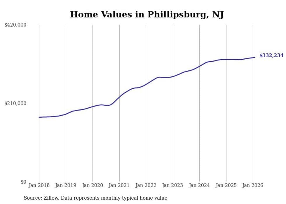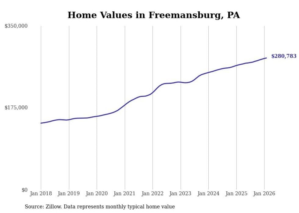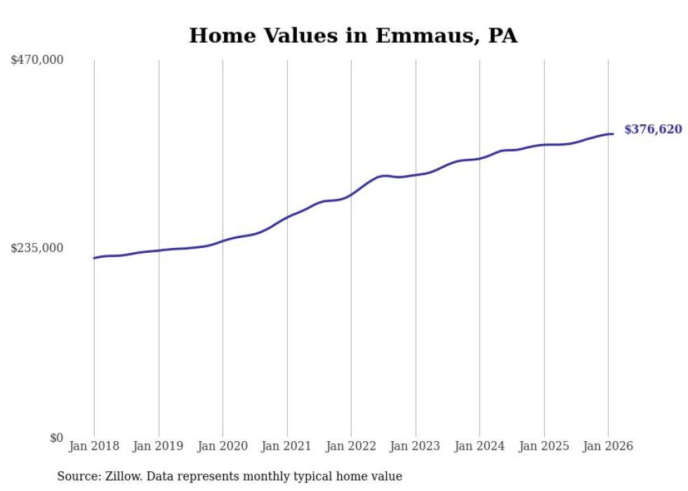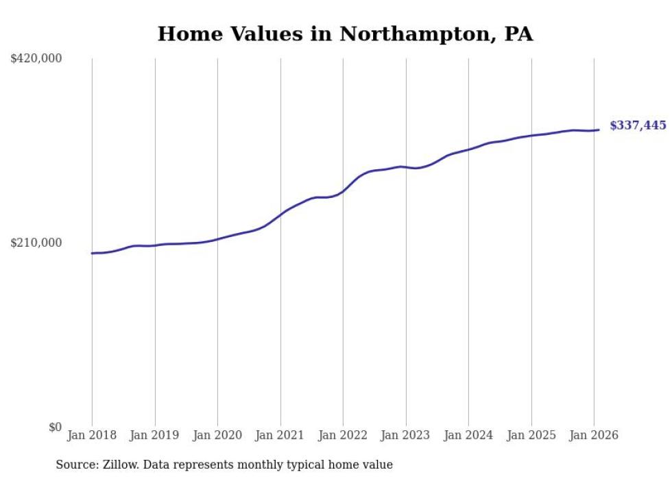compiled a list of cities with the most expensive homes in the Allentown metro area using data from . Charts show the monthly typical home value since January 2018. Data was available for 42 cities and towns.
