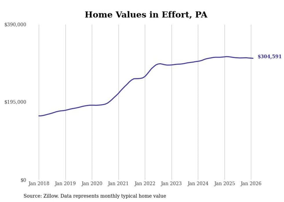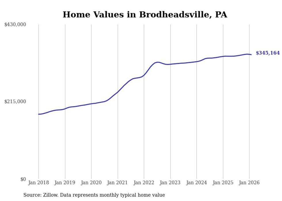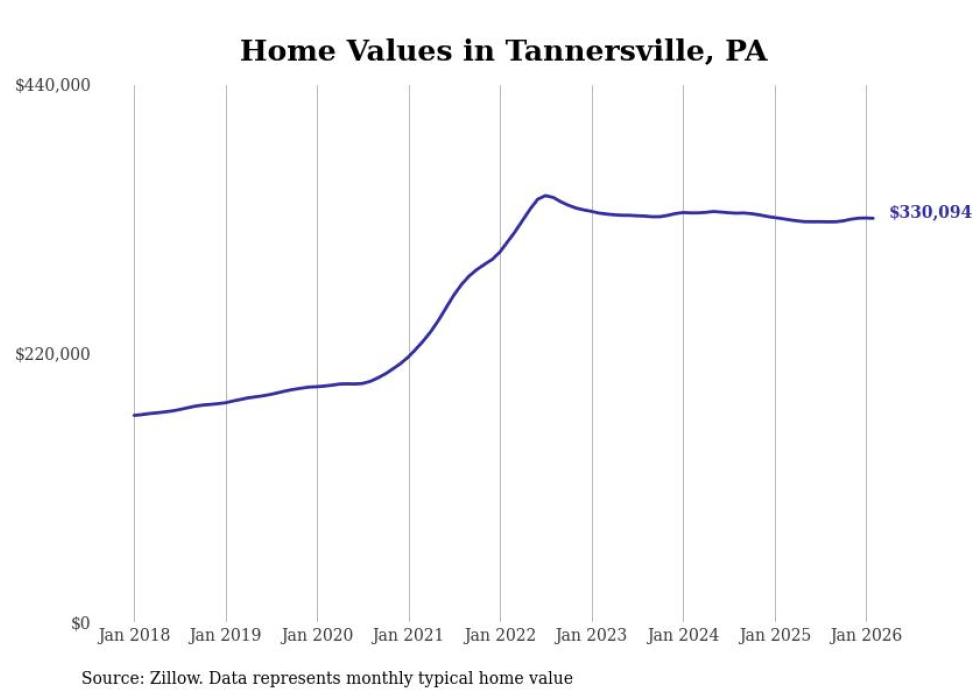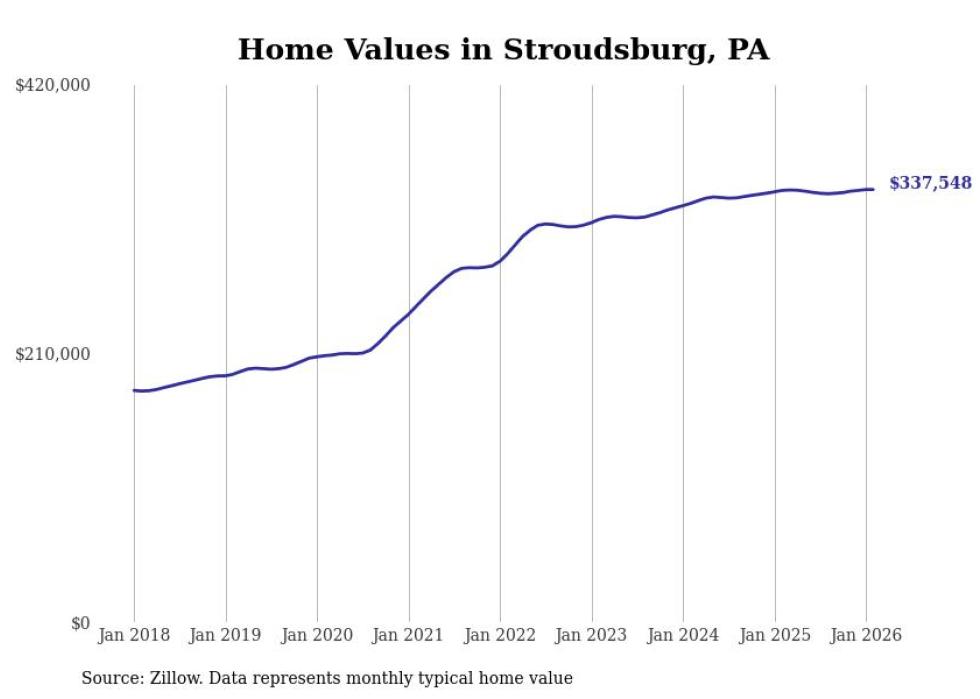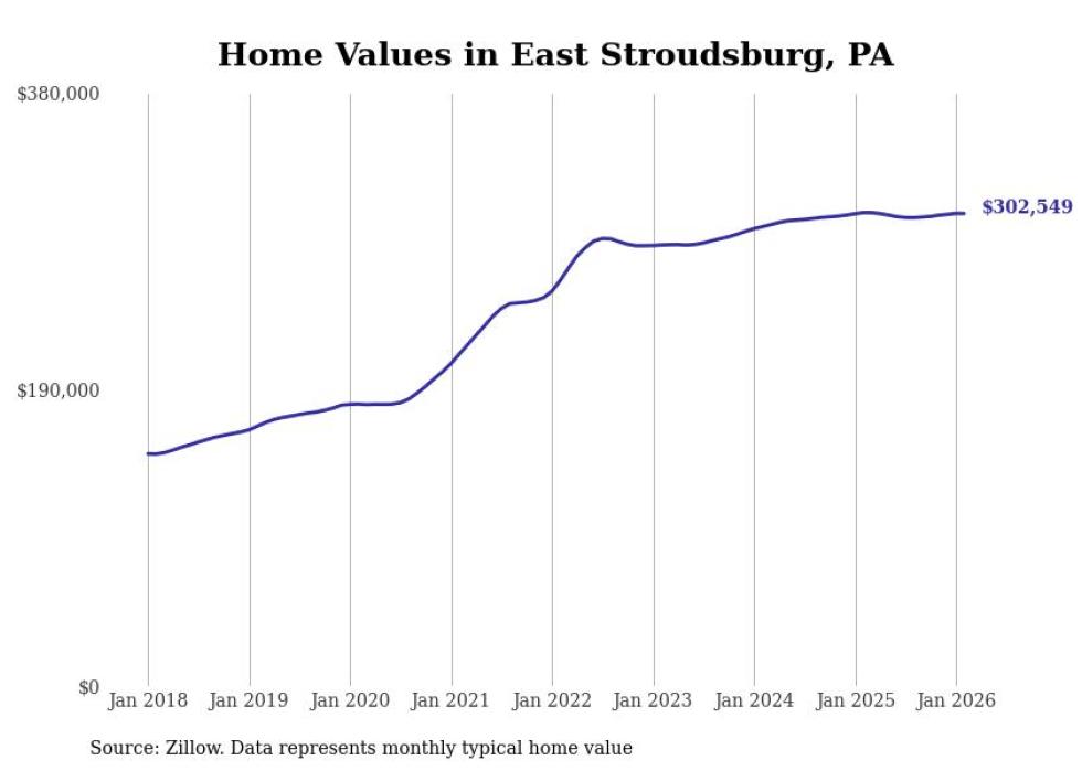 compiled a list of cities with the most expensive homes in the East Stroudsburg metro area using data from . Charts show the monthly typical home value since January 2018. All 10 cities and towns with data available were included in the list.