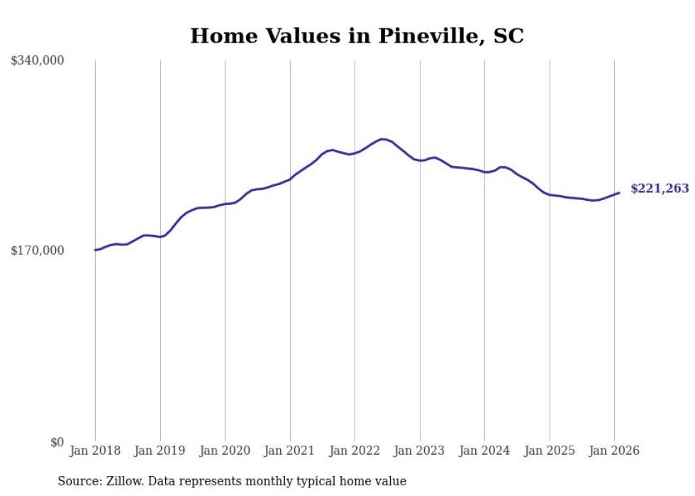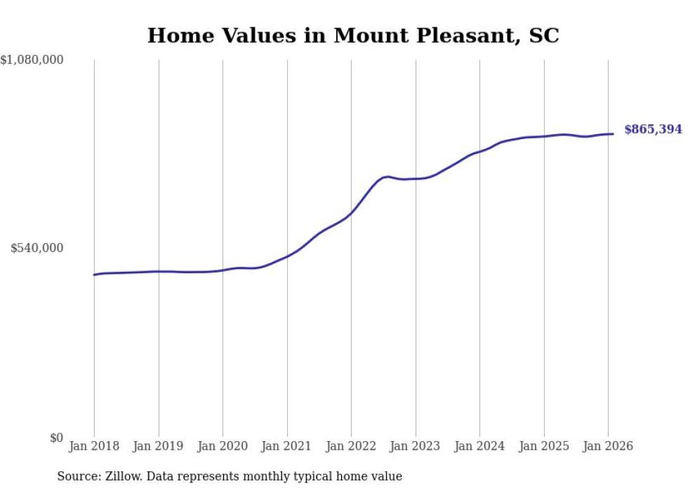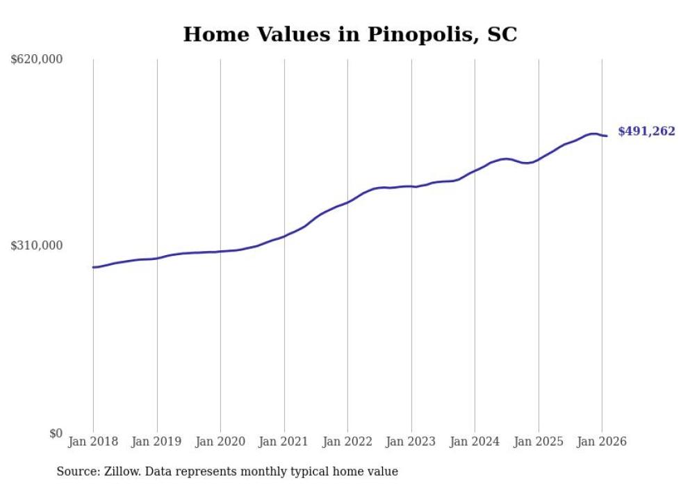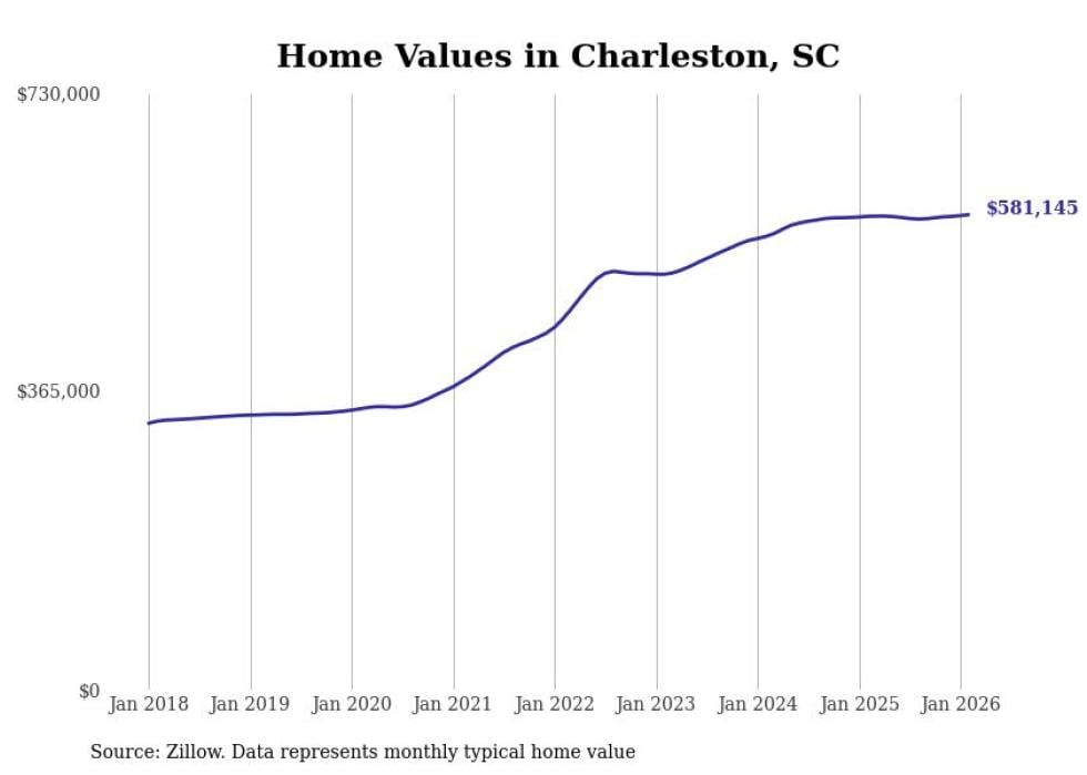 compiled a list of cities with the most expensive homes in the Charleston-North Charleston, SC metro area using data from . Charts show the monthly typical home value since January 2018.