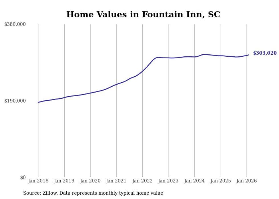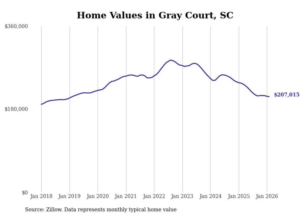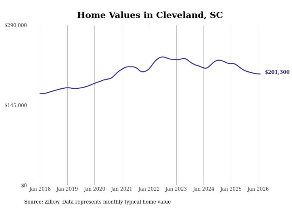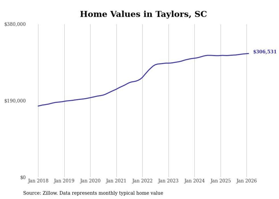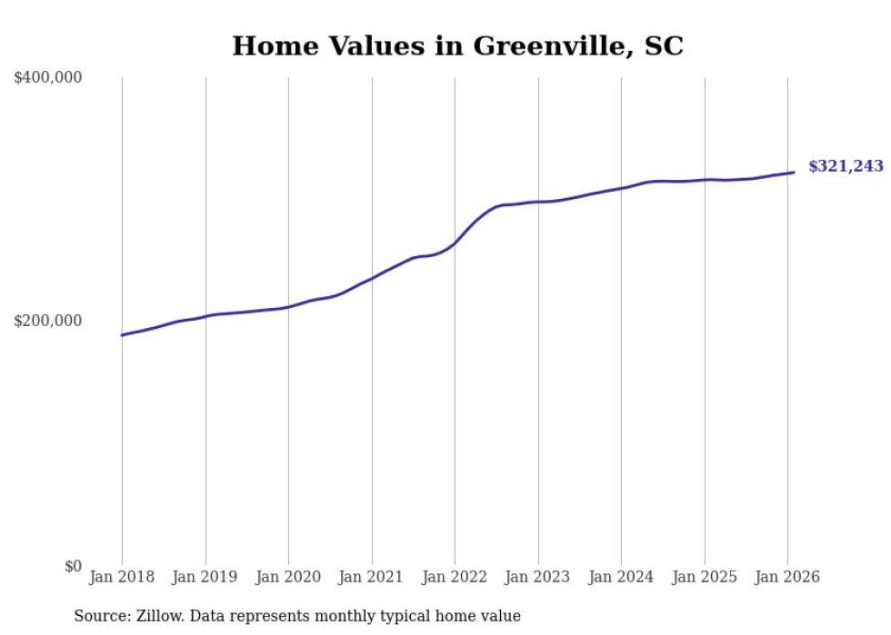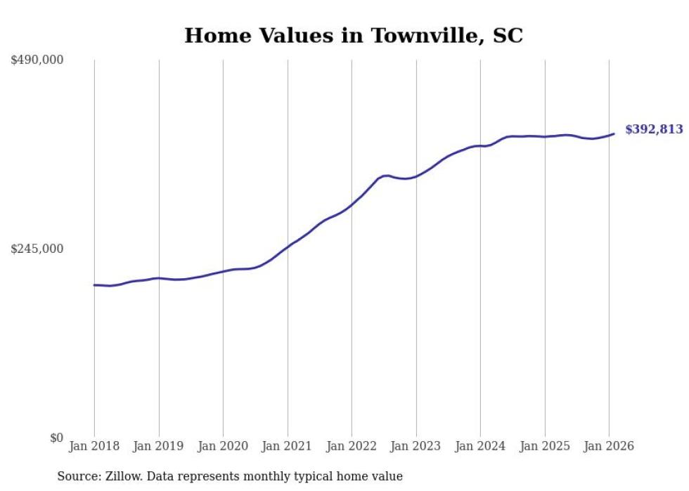 compiled a list of cities with the most expensive homes in the Greenville metro area using data from . Charts show the monthly typical home value since January 2018. Data was available for 33 cities and towns.