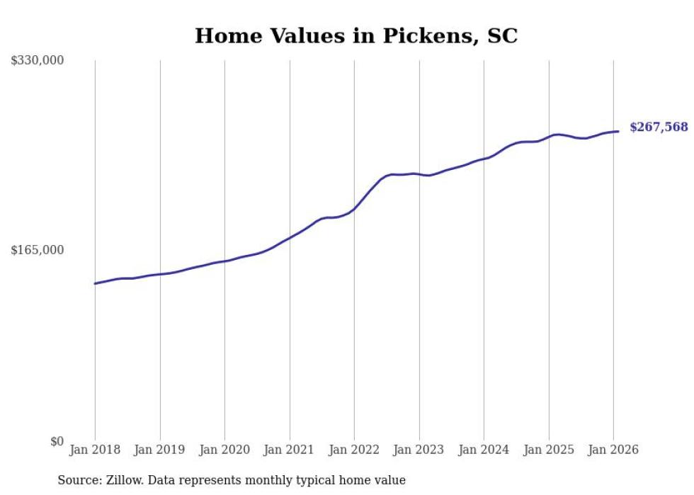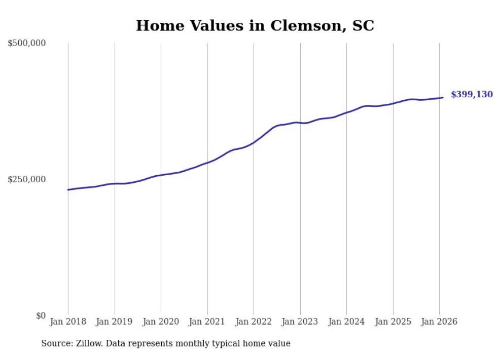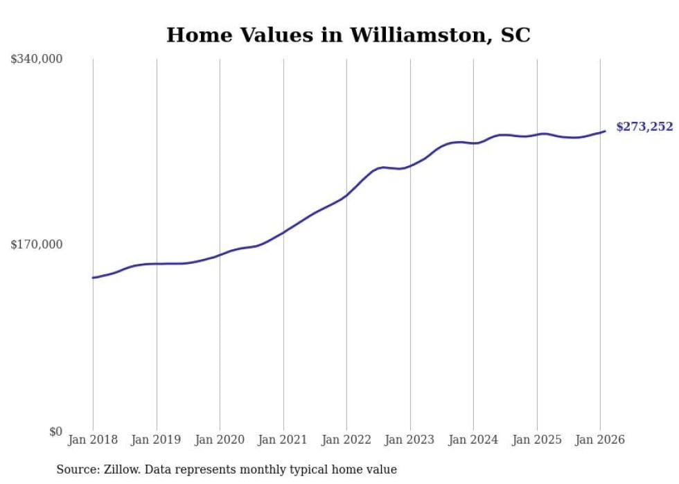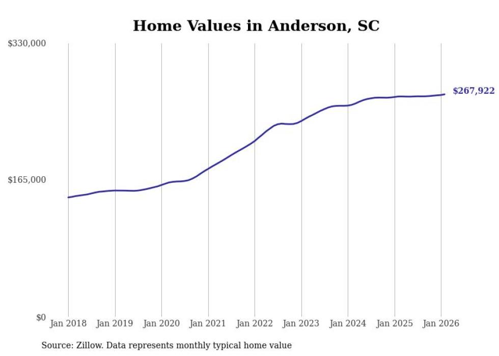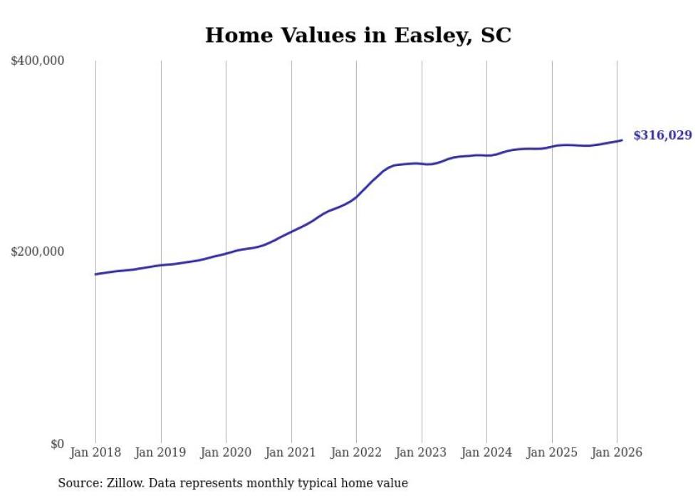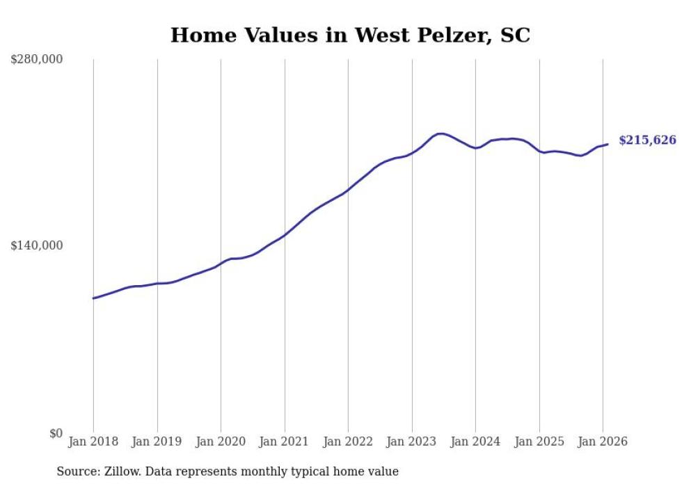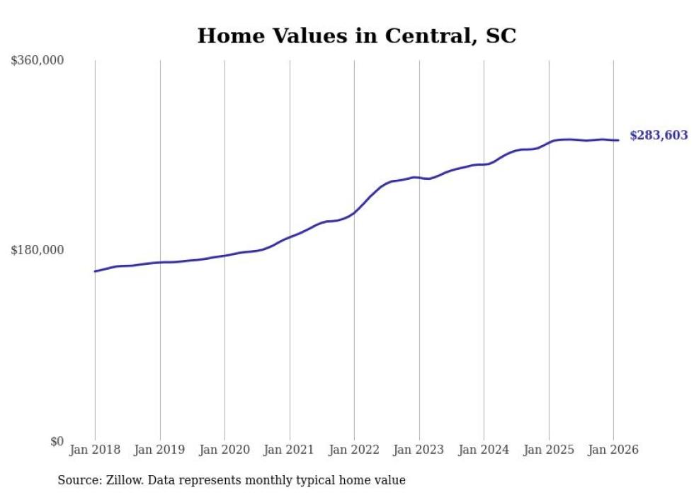 compiled a list of cities with the most expensive homes in the Greenville metro area using data from . Charts show the monthly typical home value since January 2018. Data was available for 33 cities and towns.
