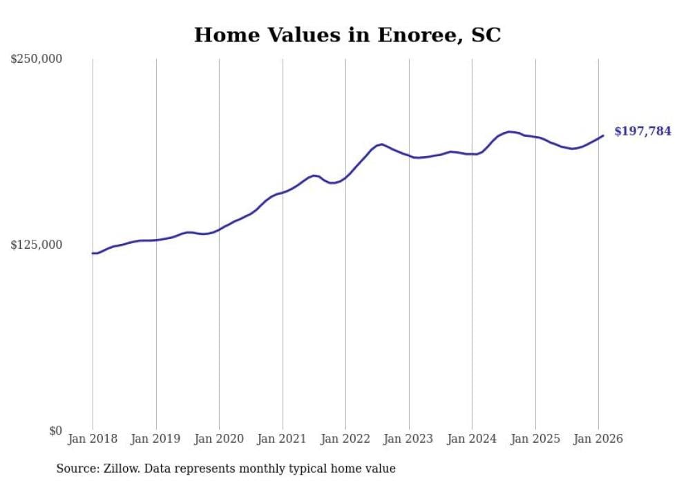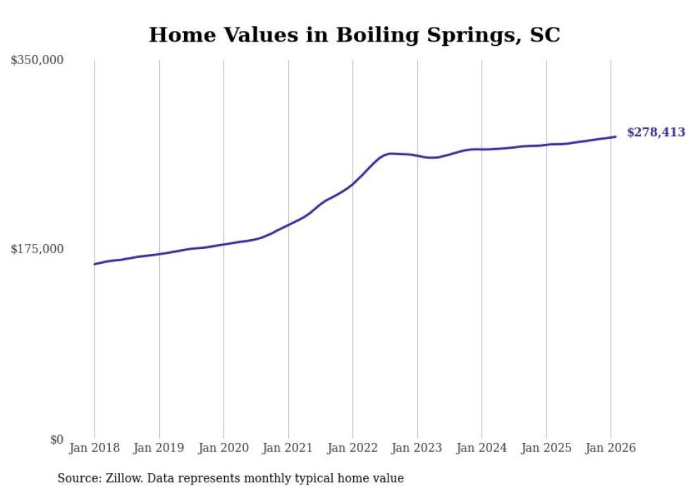 compiled a list of cities with the most expensive homes in the Spartanburg, SC metro area using data from . Charts show the monthly typical home value since January 2018.