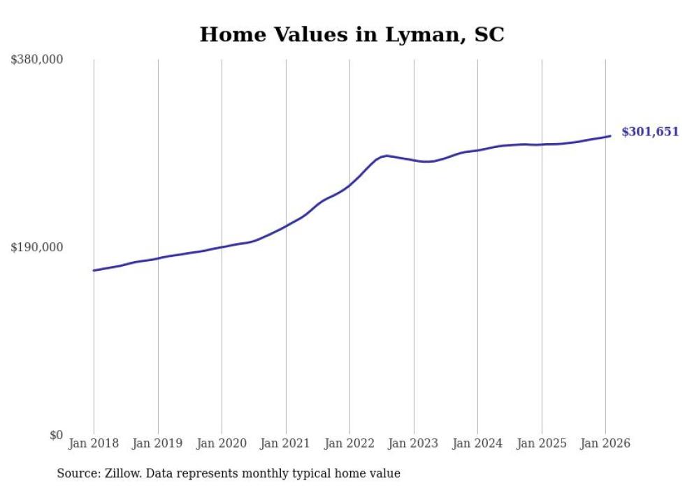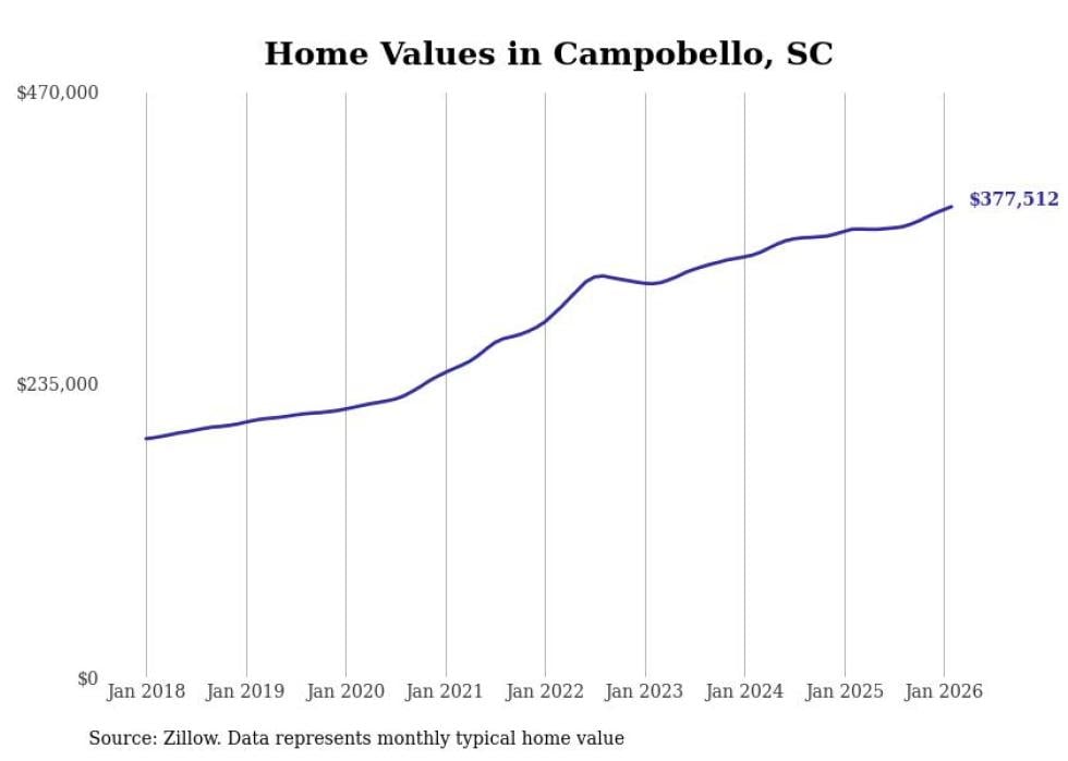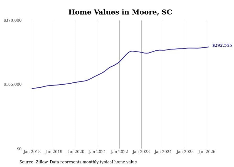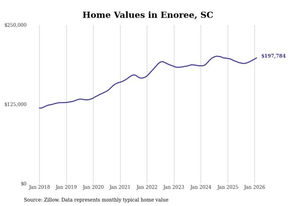 compiled a list of cities with the most expensive homes in the Spartanburg metro area using data from . Charts show the monthly typical home value since January 2018. All 15 cities and towns with data available were included in the list.