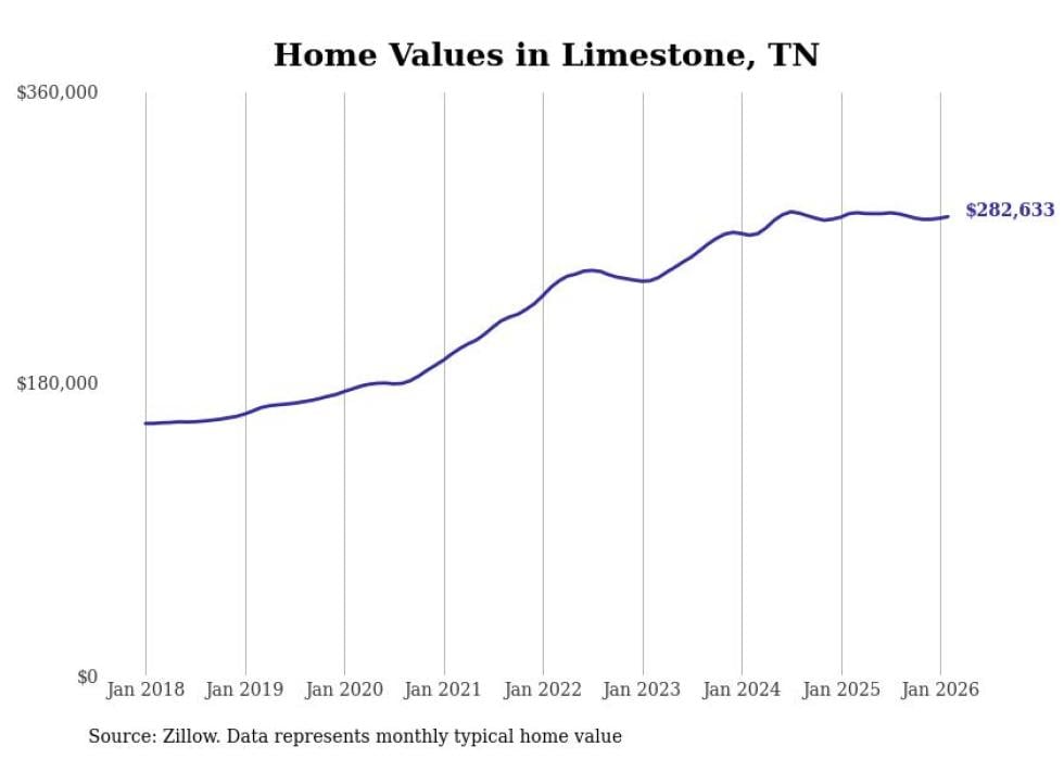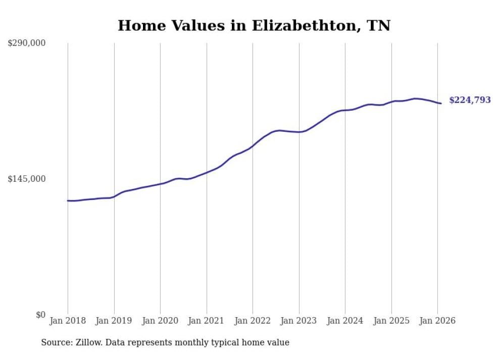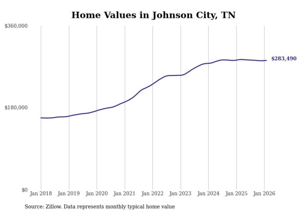 compiled a list of cities with the most expensive homes in the Johnson City, TN metro area using data from . Charts show the monthly typical home value since January 2018.