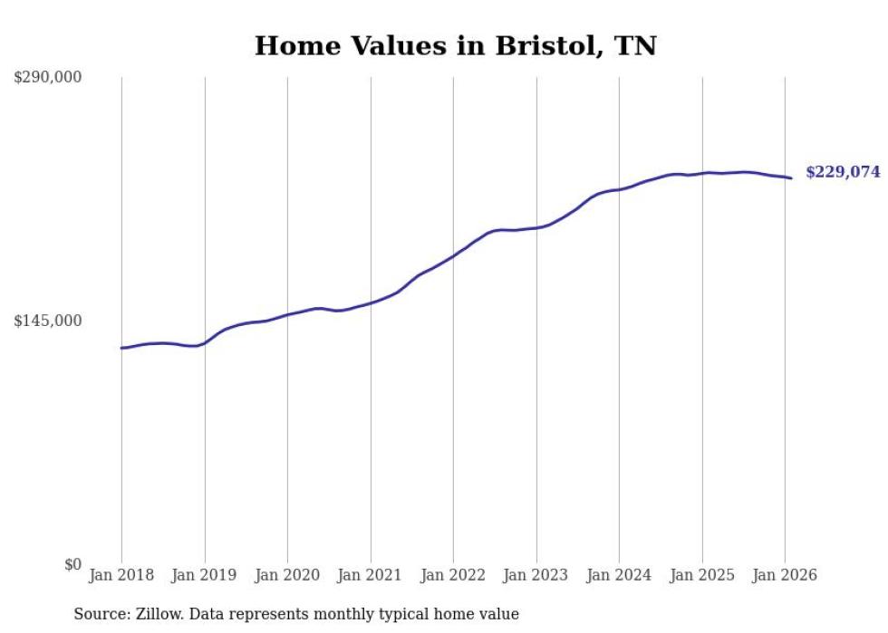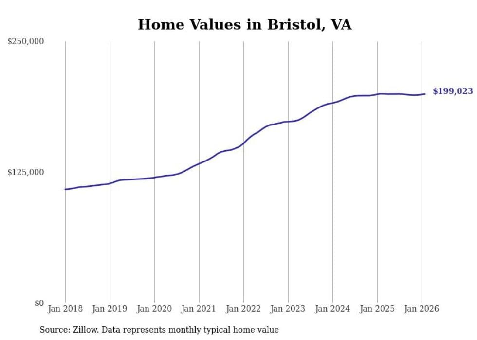 compiled a list of cities with the most expensive homes in the Kingsport-Bristol, TN-VA metro area using data from . Charts show the monthly typical home value since January 2018.