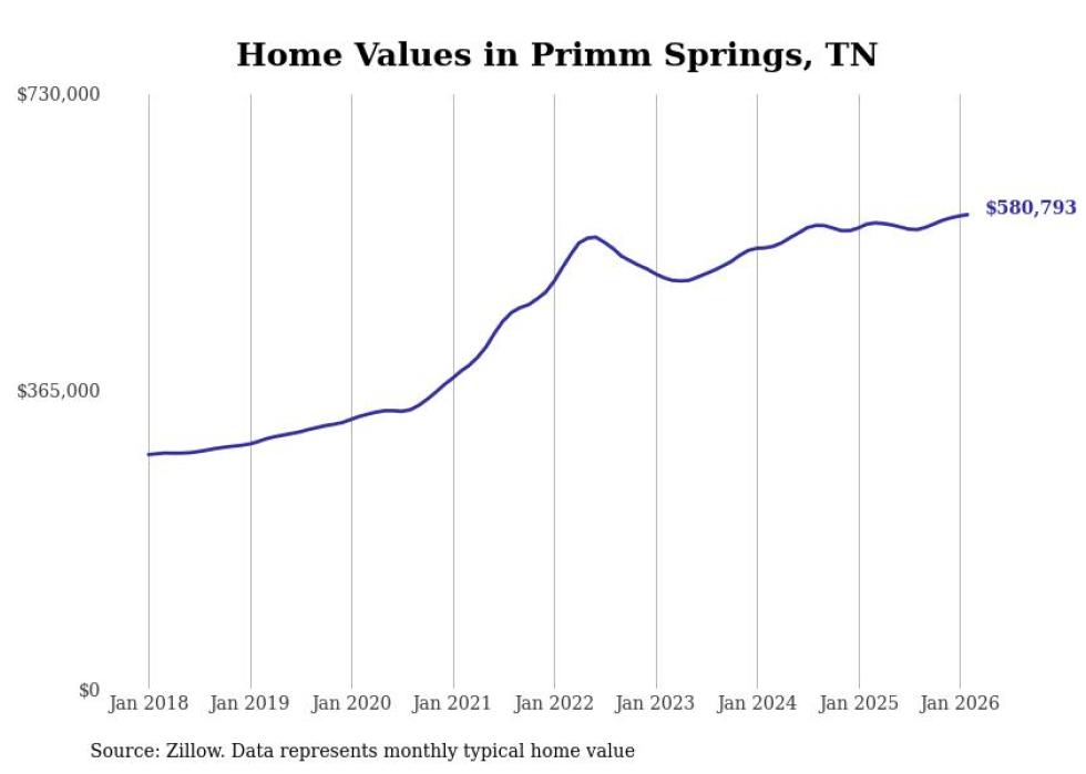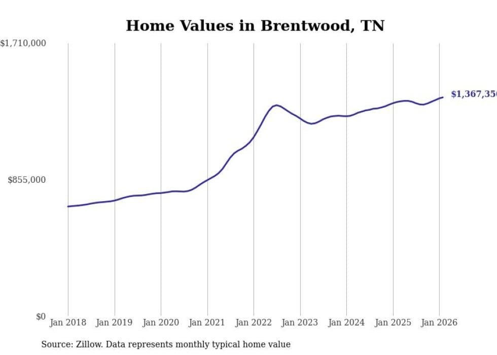 compiled a list of cities with the most expensive homes in the Nashville metro area using data from . Charts show the monthly typical home value since January 2018. Data was available for 75 cities and towns.