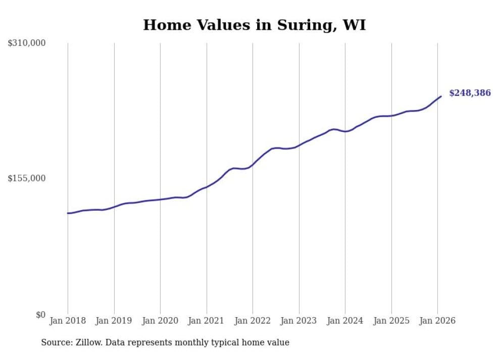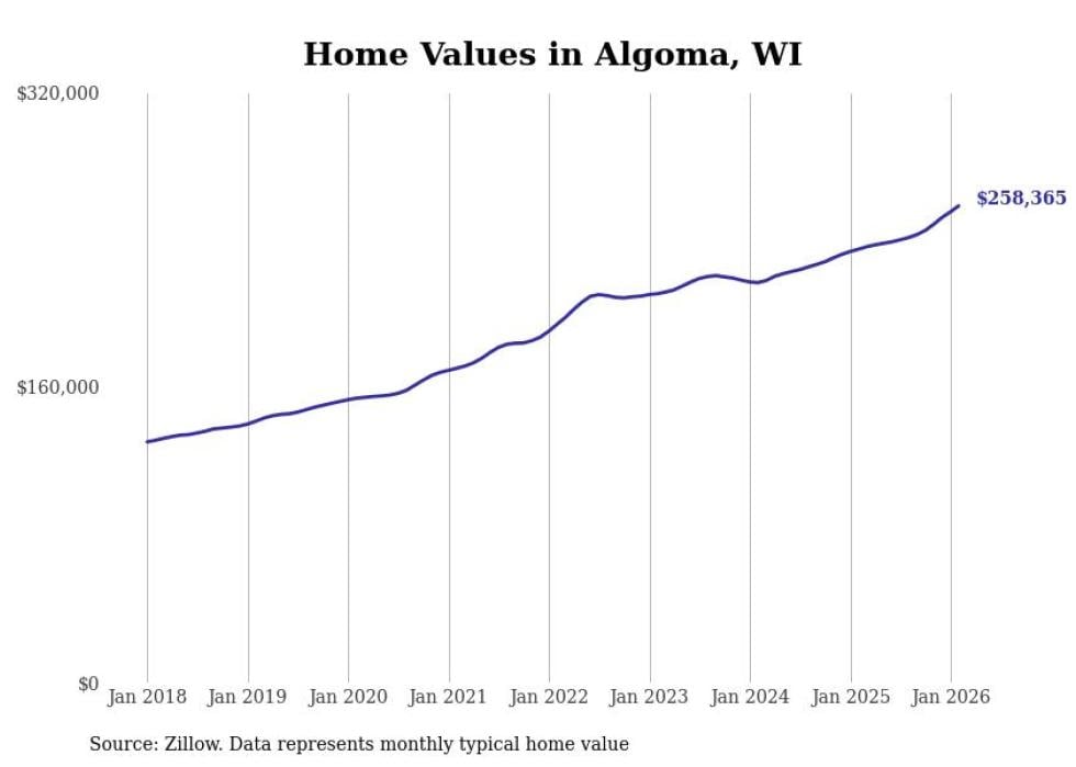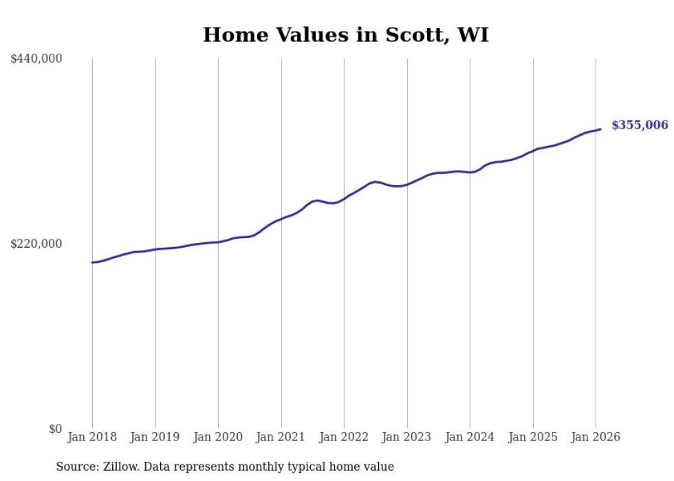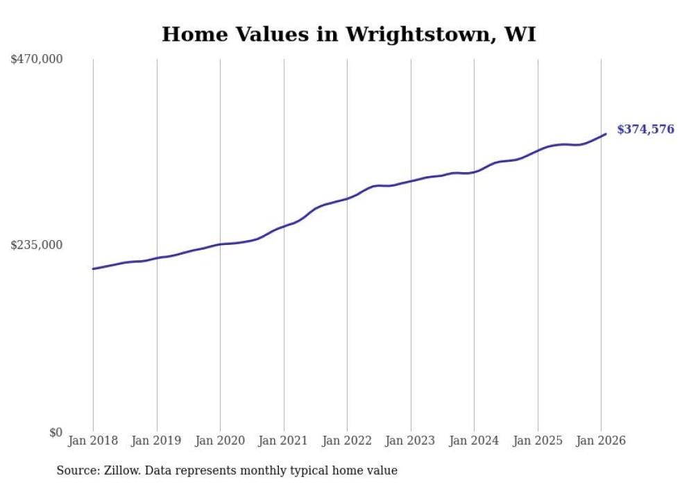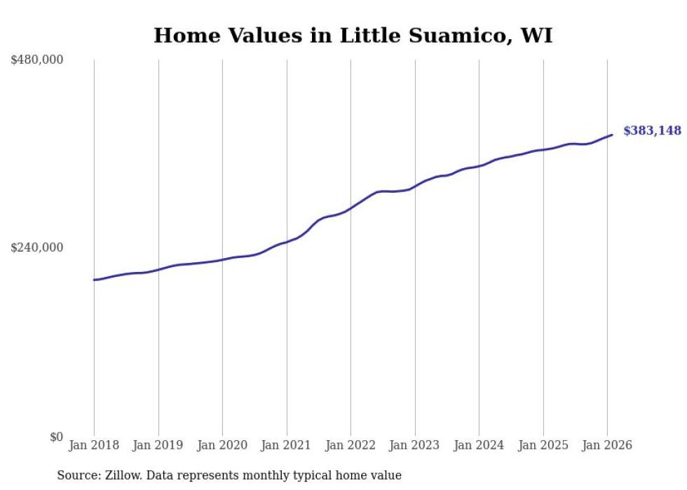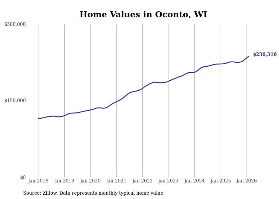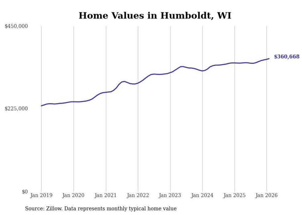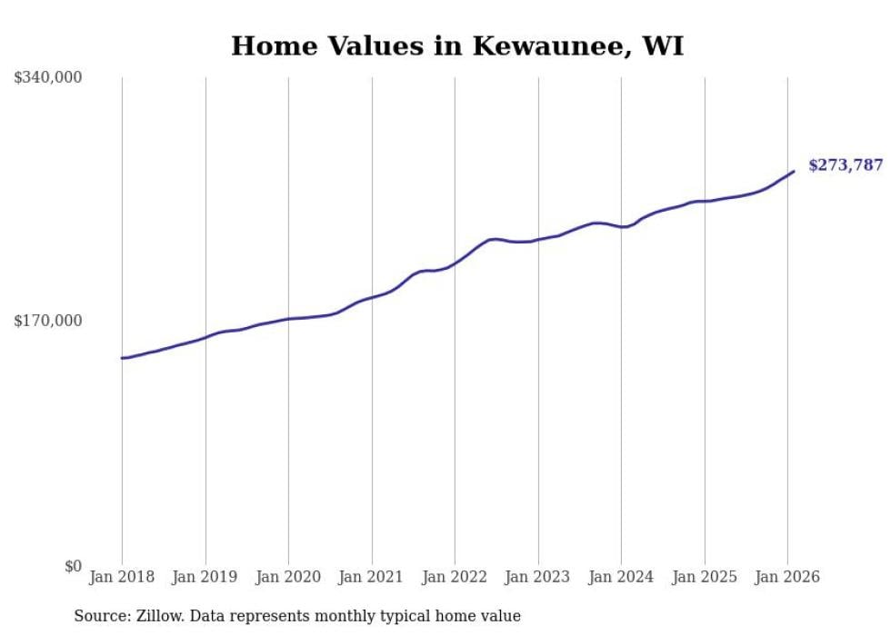 compiled a list of cities with the most expensive homes in the Green Bay, WI metro area using data from . Charts show the monthly typical home value since January 2018.